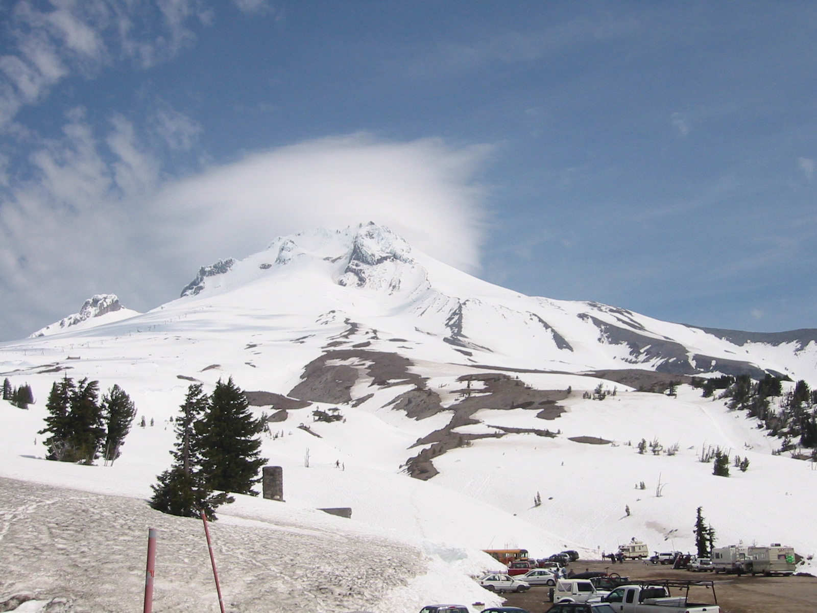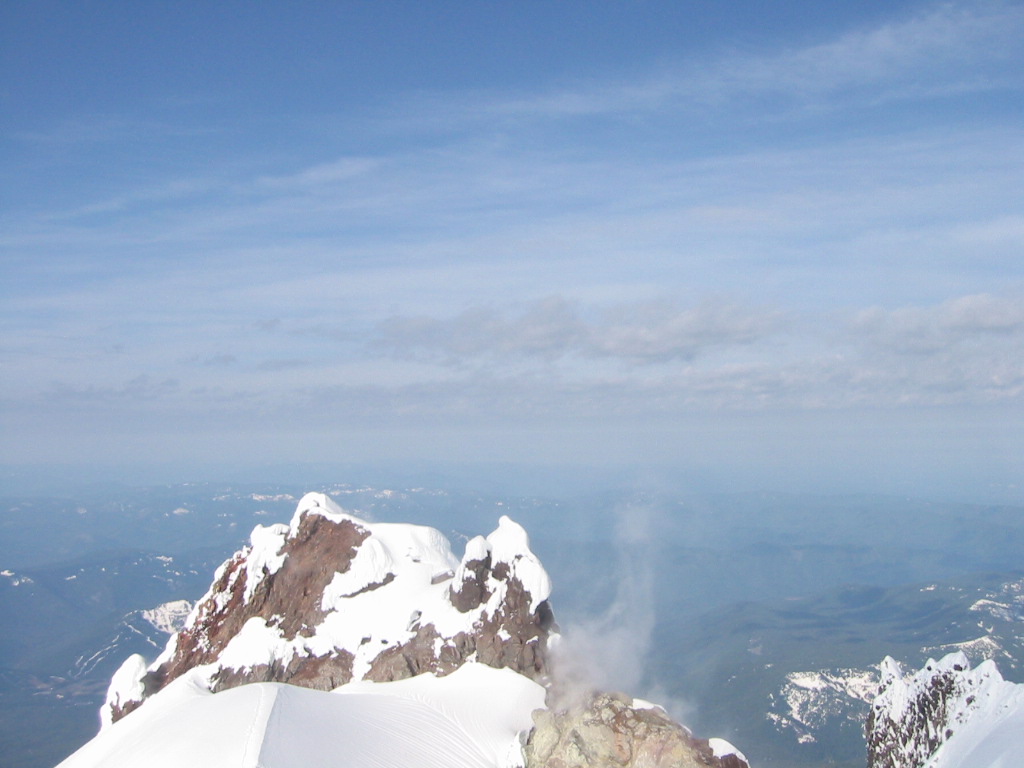 Lest anyone think this is just a regular mountain. Mt. Hood is an inactive volcano. See  cloud in the forground is sulfer gas being vented.